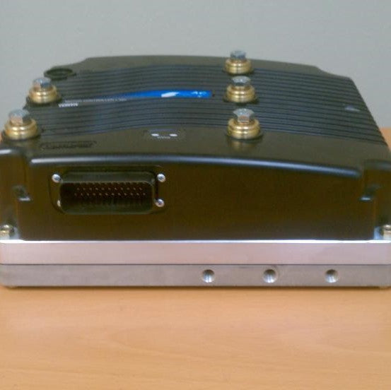 Made from 6061 solid aluminum, this 5/8" thick plate is fitted with 1/8" NPT inlet and outlet ports, as well as a thermistor port for monitoring temperature, and controlling the fan and pump. This plate achieves almost perfect 50/50 distribution between aluminum surface, and liquid channels to the surface of the controller. This is an unfinished aluminum plate and can be buffed with an abrasive pad for a matte finish or polished for a chrome look.
